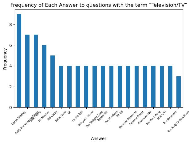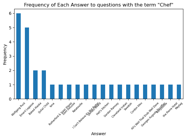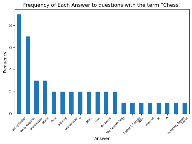 plt.title(f'Frequency of Each Answer to questions with the term \"{term}\"')